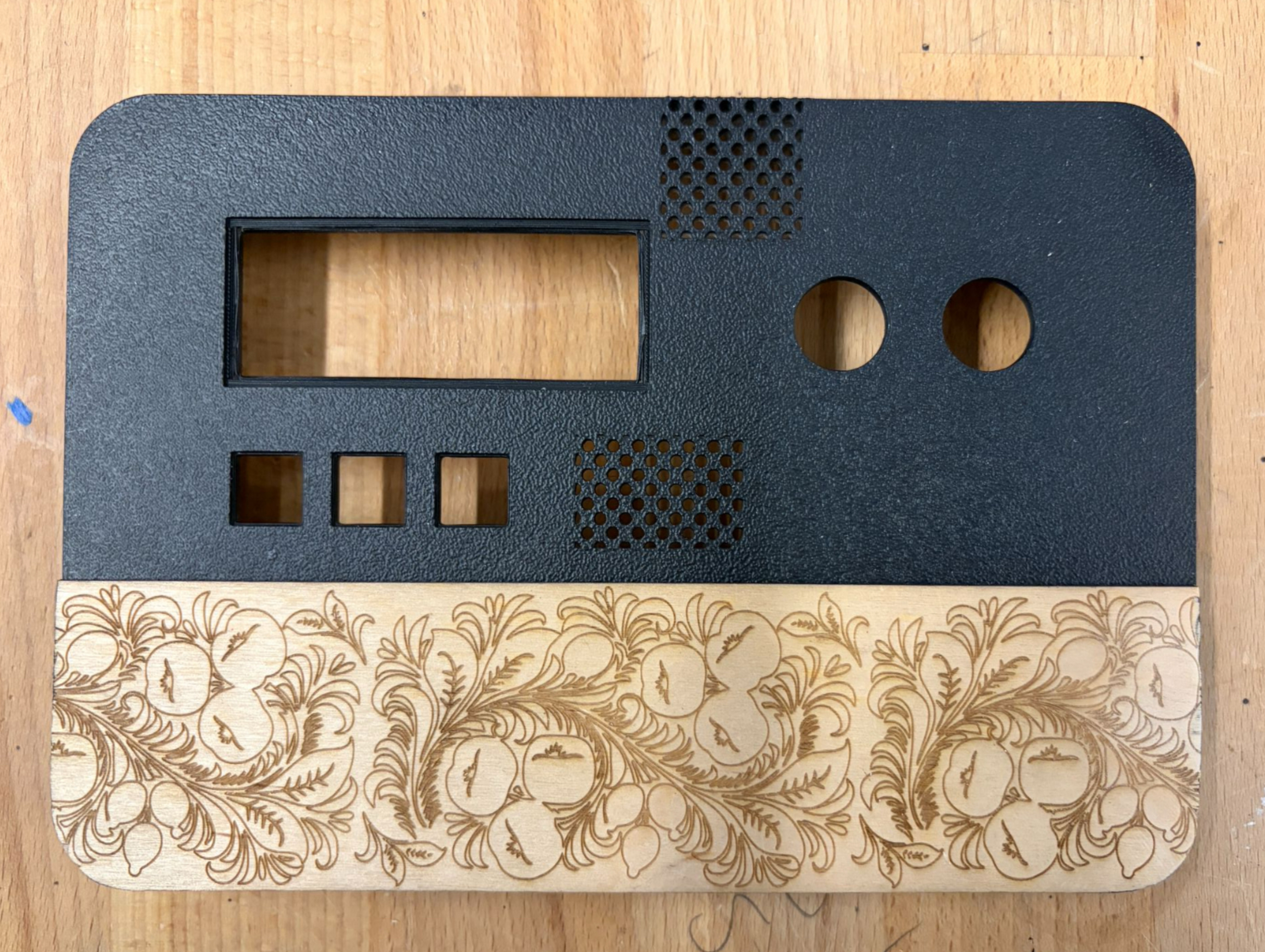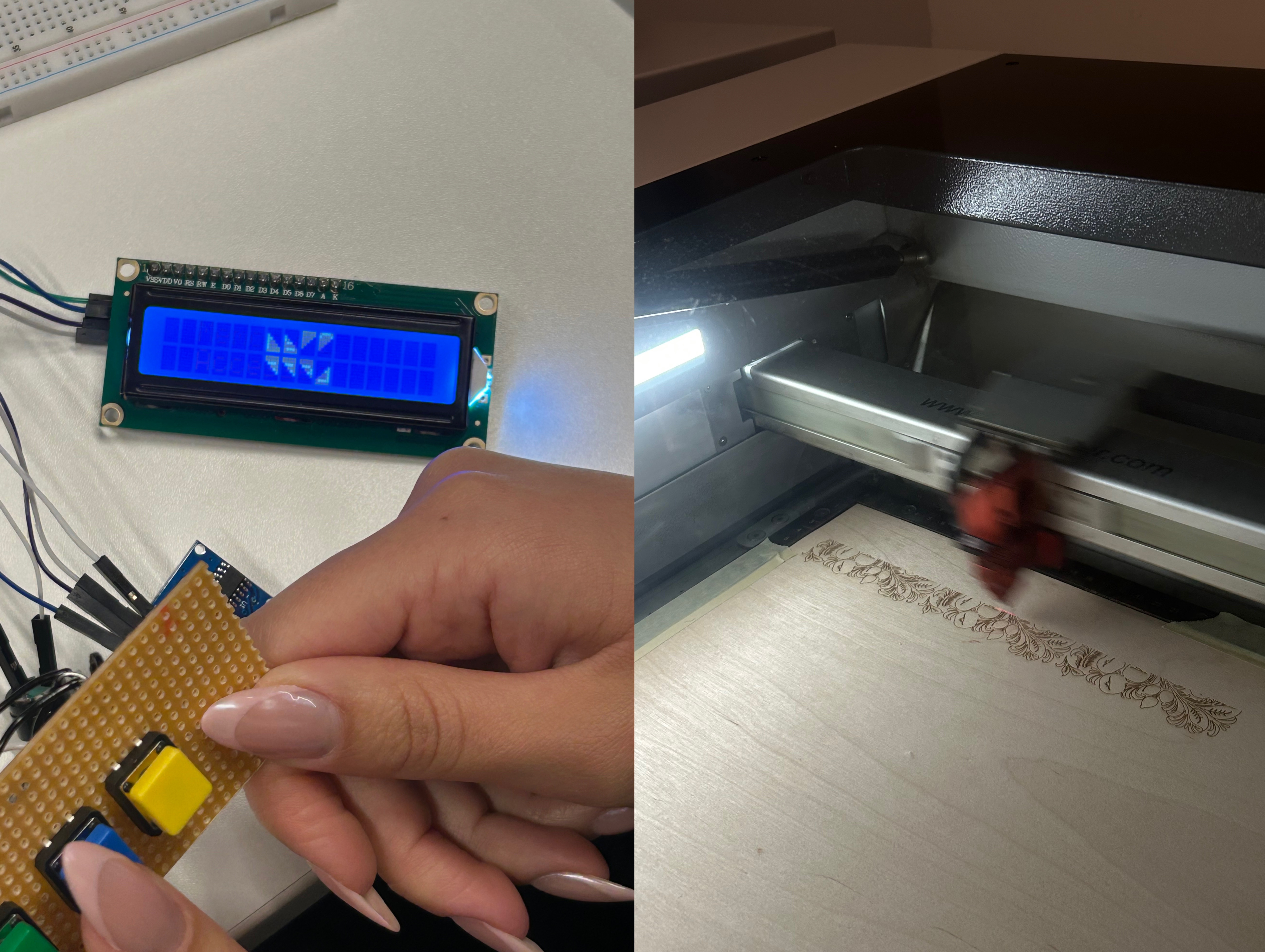 Physical fabrication: AutoCAD (enclosure modeling), laser cutting, 3D printing (PLA filament)
